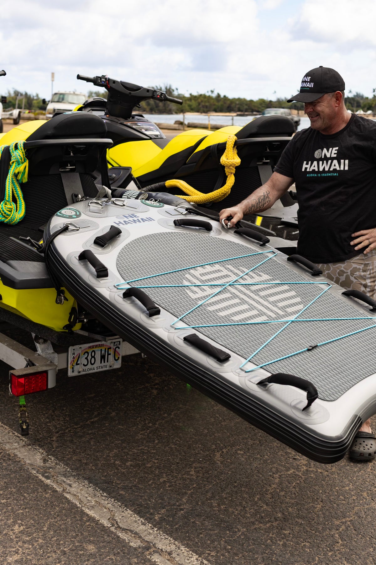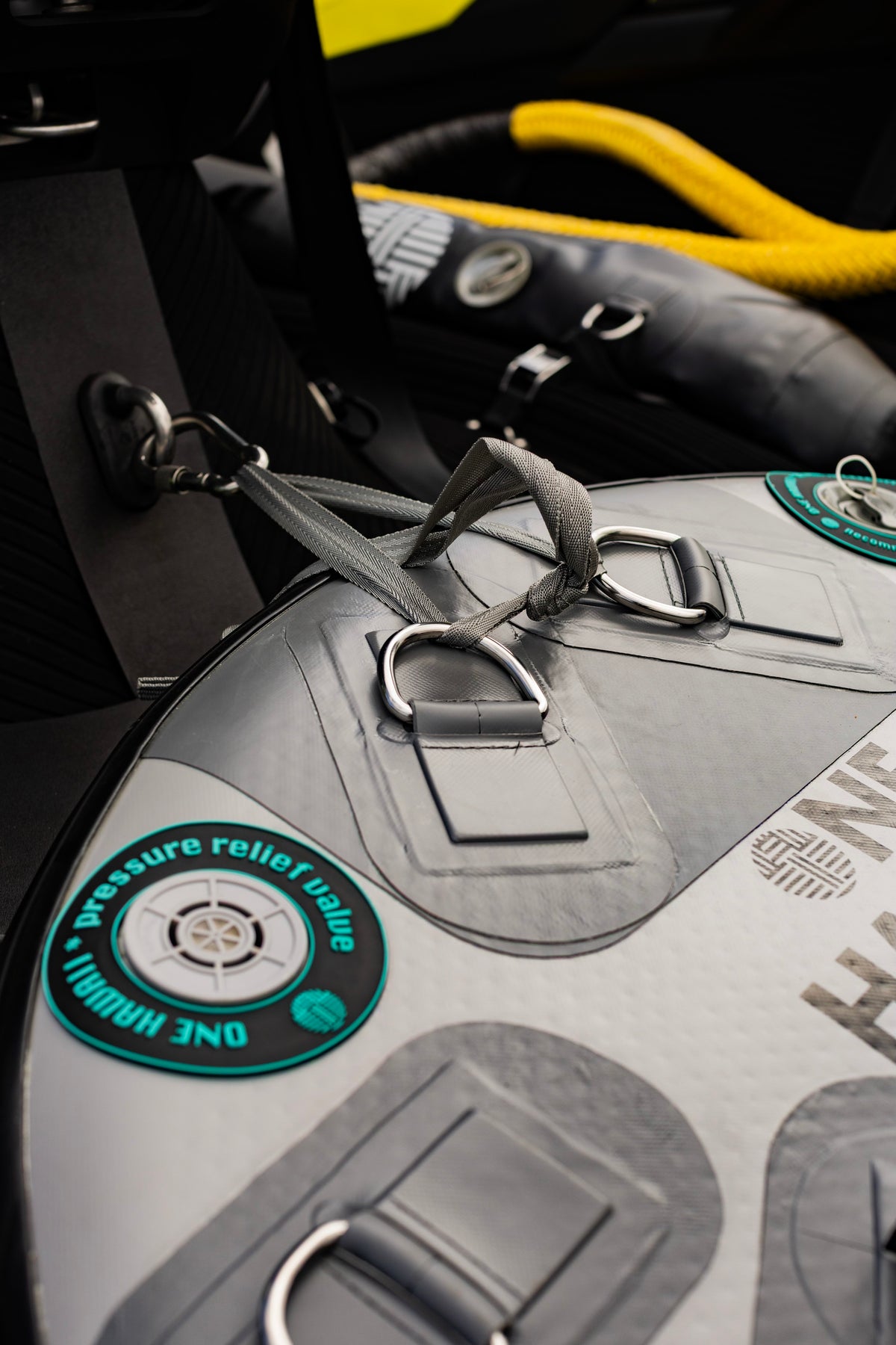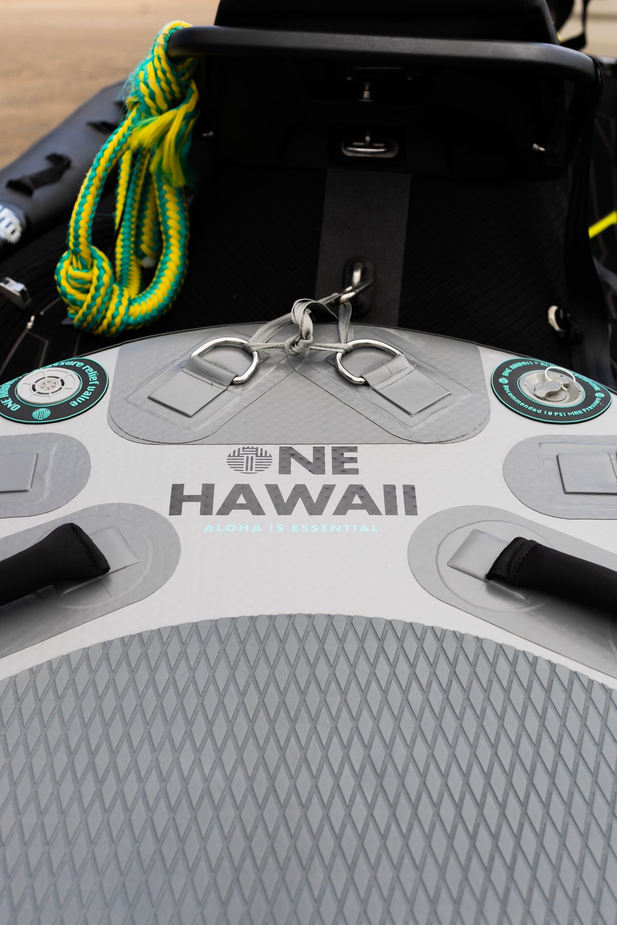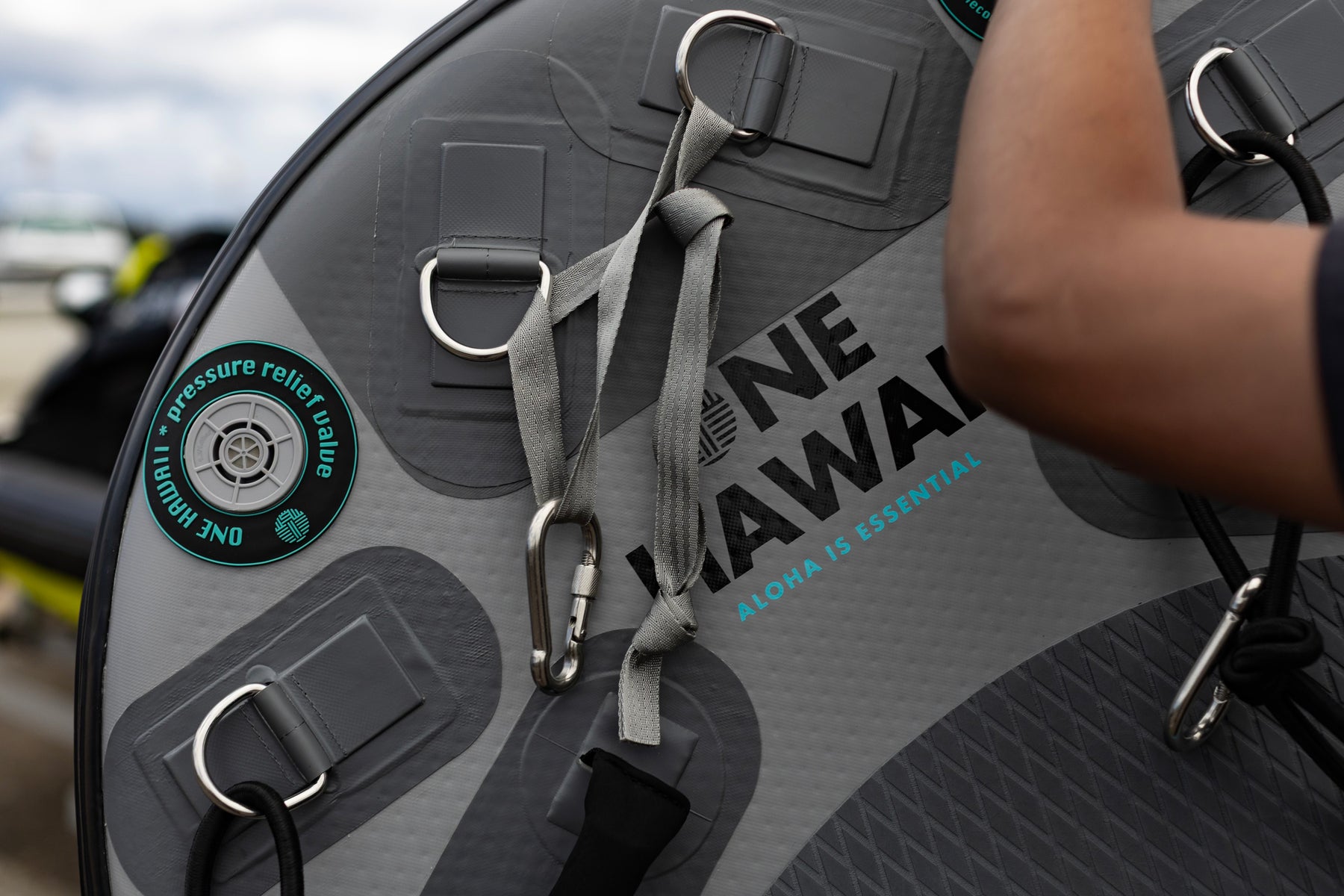 The redesigned One Hawaii D2 Water Sled is engineered for rugged performance and long-lasting durability. Its handles are constructed with a fused double-layer stitch and padded foam for optimal sturdiness and comfort. To reduce chafing and extend the lifespan of your sled, the bottom and rails are reinforced with high-grade PVC rubber protection.